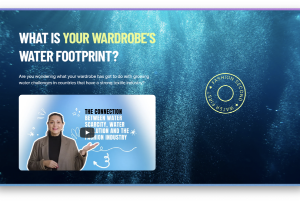 The Water Playbook is an online tool that provides information on the connection between water and fashion. It allows you to calculate your own wardrobe's water footprint and provides an overview of the water consumption of different fibers. We will launch a special version for brands and another for school students in 2023.