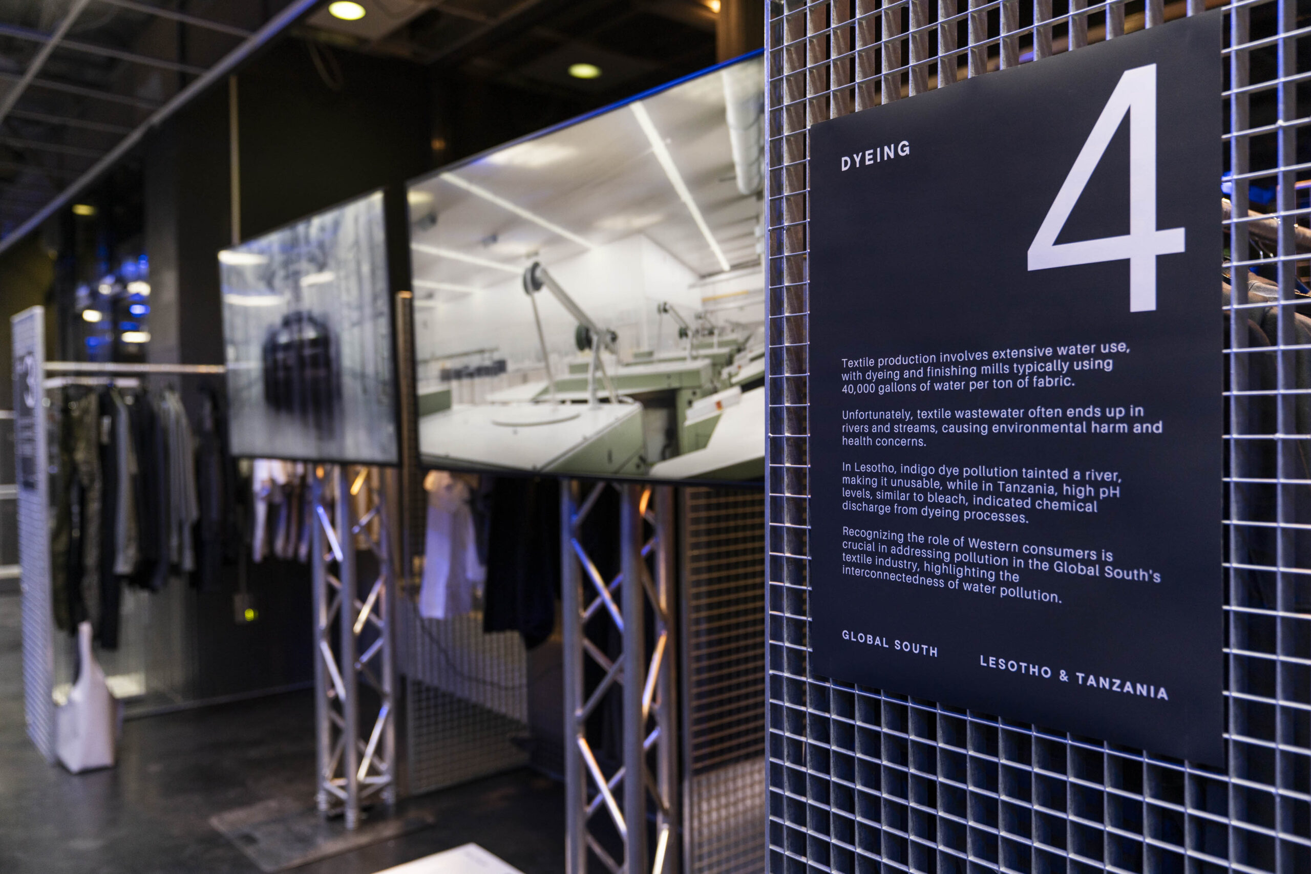 Unsere Ausstellung FLUID FASHION lenkt die Aufmerksamkeit auf das oft übersehene Problem der Wasserverschmutzung durch die Textilindustrie. Durch Kunst machen wir die komplexen Prozesse der Modeherstellung sichtbar und zeigen ihre erheblichen Auswirkungen auf die Umwelt – insbesondere auf lokale Süßwasserressourcen.